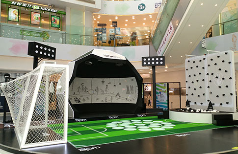 北京apm商業(yè)中心是一個人流量集中的大型購物商場。在世界杯期間,晟跡創(chuàng)意將多媒體互動技術(shù)融入,在這里你可以體驗(yàn)到互動魔法墻、互動攀巖墻、地面互動跑酷帶來的樂趣。