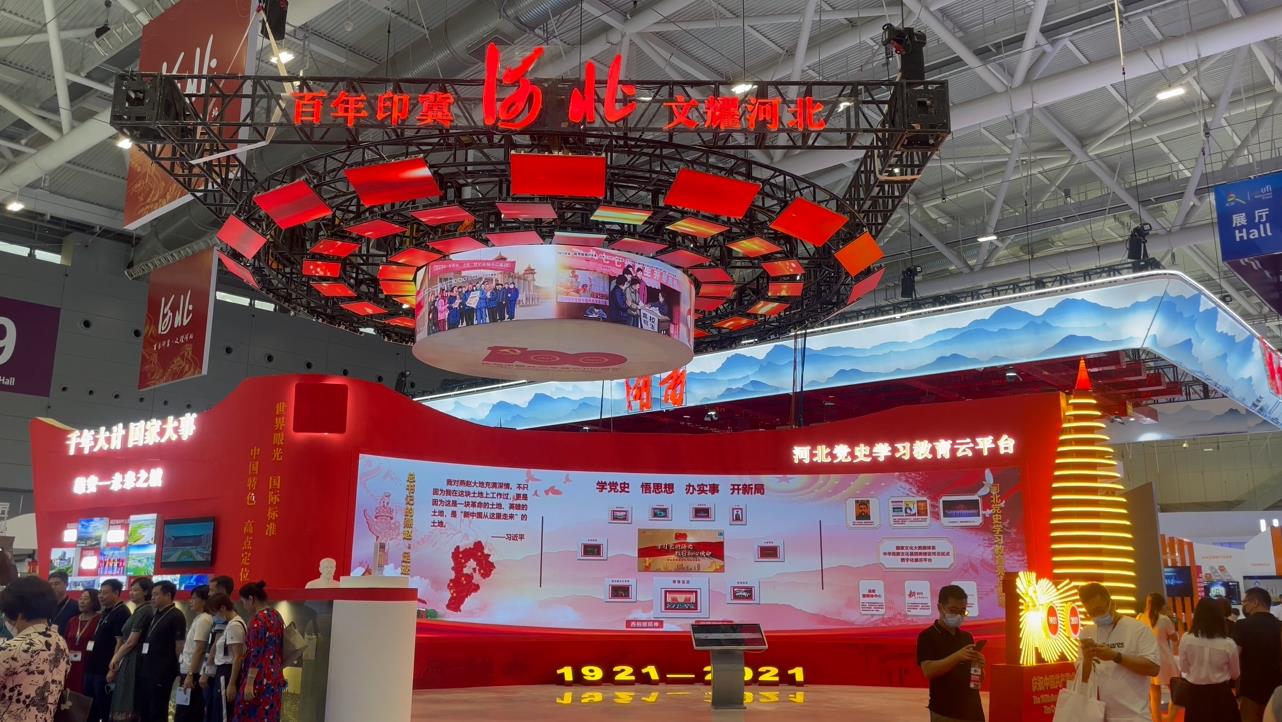 深圳文博會河北主展區(qū)面積533平方米,以百年印記、文耀河北為主題。展區(qū)整體造型以雪如意、西柏坡、雄安融合塔等河北特色符號作為展區(qū)設(shè)計(jì)元素,展示河北建設(shè)文化成就。